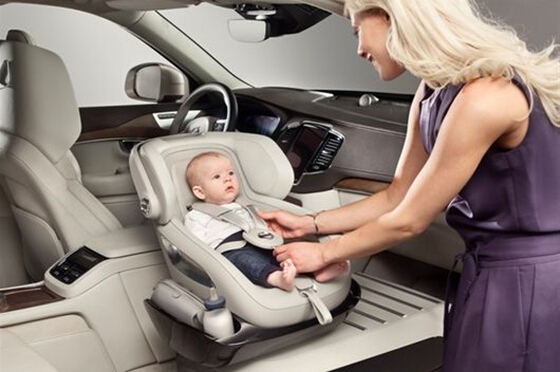 在今年4月舉辦的上海國際車展上,沃爾沃在XC90榮譽版車型上展出了全新的Lounge Console豪華內(nèi)飾概念,取消了副駕駛座位,取而代之的則是集成了后座腳踏、液晶顯示器甚至鞋履收納盒的多功能模塊,在為后排乘客提供更大活動空間的同時還讓整車變得相當高端豪華。不僅如此,基于已有的Lounge Console概念,沃爾沃現(xiàn)在又為副駕駛位的多功能模塊加入了全新的Child Seat Concept兒童安全座椅,讓后座乘客可以輕松照看孩子。