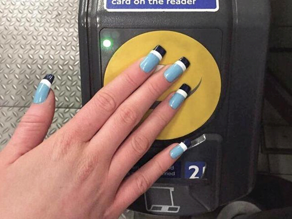這位英國(guó)的珠寶設(shè)計(jì)師,把公交預(yù)付卡中的RFID芯片放進(jìn)了丙烯酸材質(zhì)的人工指甲當(dāng)中,佩戴者只要把手指靠近讀卡器就能快速刷卡上車(chē)。這樣一來(lái),你就再也不必?fù)?dān)心公交卡忘帶或是弄丟了。