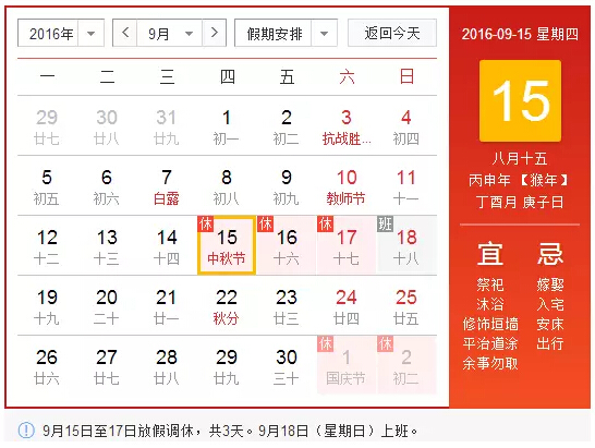 9月15日- 17日,中秋小長假可是2016年的倒數(shù)第二個(gè)長假呀~
