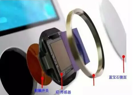 現(xiàn)階段指紋識別分為正面接觸、背面接觸、正面滑動、背面滑動四種解決方案,其中以iPhone5s的正面接觸為例,在輕觸開關、ID傳感器、驅動環(huán)、藍寶石鏡面等環(huán)節(jié)都需要點膠工藝的參與。
