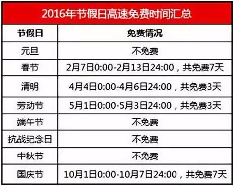 1.2016年國(guó)慶高速免費(fèi)車型: