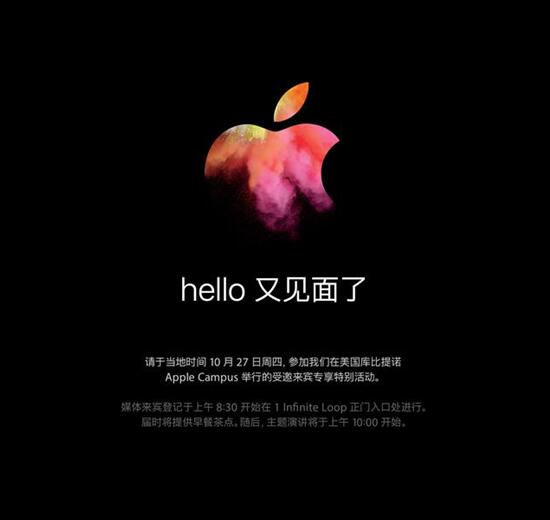 這次邀請函的主題是“hello 又見面了”,并且用濃墨重彩修飾了蘋果logo,每次蘋果邀請函都暗藏玄機,而“又見面了”至少暗示了舊產(chǎn)品的革新,與之前的傳聞多少有點關(guān)聯(lián)。