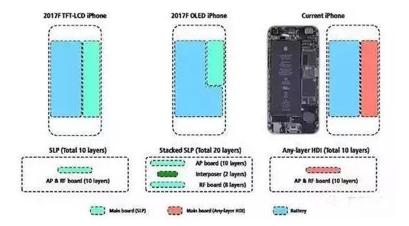 同樣是4.7寸,電池容量怎么做到增加獎(jiǎng)金1000mAh?據(jù)分析師說,蘋果會在iPhone 8身上采用堆疊式類板(Substrate-like PCB/SLP),可以堆上多達(dá)20層,從而大大減小主板面積,將更多內(nèi)部空間留給電池。