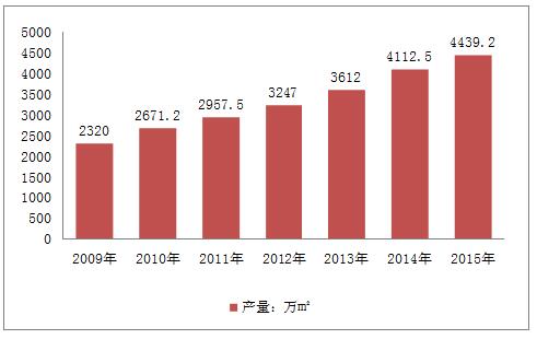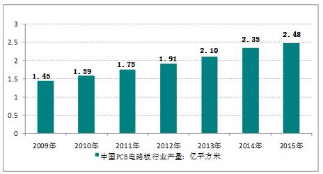 2009-2015年我國PCB電路板行業(yè)產(chǎn)量情況