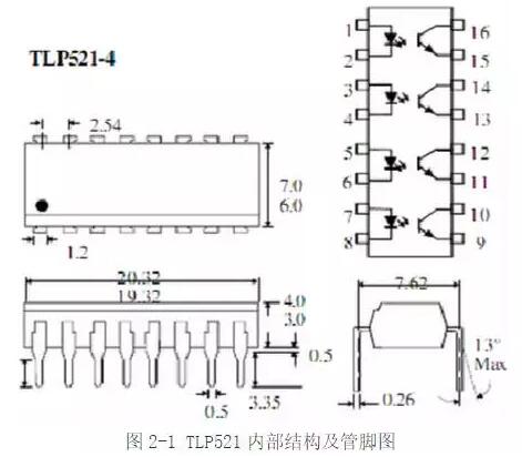 常用于反饋的光耦型號有TLP521、PC817等。這里以TLP521為例,介紹這類光耦的特性。圖2-1所示為光耦內(nèi)部結(jié)構(gòu)圖以及引腳圖。