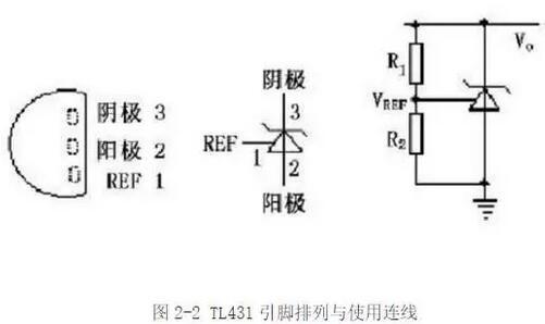 TL431是由德州儀器生產(chǎn)的可控精密穩(wěn)壓源,實物如圖2-3所示。它的輸出電壓用兩個電阻就可以任意的設(shè)置到從2.5V到36V范圍內(nèi)的任何值。該器件的典型動態(tài)阻抗為0.2Ω,在很多應用中用它代替穩(wěn)壓二極管,例如,數(shù)字電壓表,運放電路,可調(diào)壓電源,開關(guān)電源等。圖2-2所示為TL431引腳排列與使用連線圖。