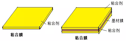 (3) 粘結(jié)膜:是在一個(gè)基材膜的二面或一面澆注粘結(jié)劑而形成,也有無(wú)基材的純粘結(jié)劑層的粘結(jié)膜,如圖5。粘結(jié)膜有不同粘合劑類型和厚度規(guī)格。粘結(jié)膜是用于多層板層間粘合與絕緣。