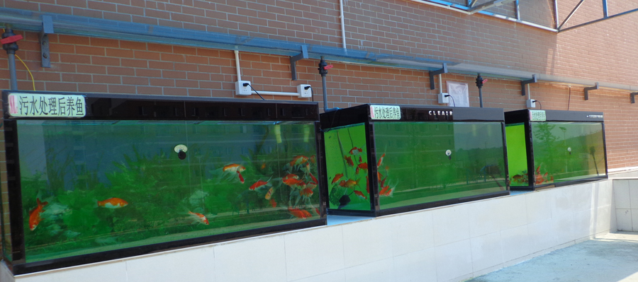 在深聯(lián)一直有這么一件“神奇”的事,在環(huán)保部的回用水處理區(qū)域里,你會(huì)看到有擺放著三個(gè)大魚缸,而且能清晰見到一群在沒有專人喂養(yǎng)的情況下還游得正歡,長(zhǎng)得正漂亮的金魚!其生存的水質(zhì)還是來自處理后的回用水。這不可思議吧?剛開始時(shí)是把它作為環(huán)保工作的一種挑戰(zhàn)目標(biāo),但現(xiàn)在成了一工作閑暇之余的觀賞樂趣了,當(dāng)然這也可以當(dāng)是深聯(lián)環(huán)保工作隨時(shí)可見的成果。