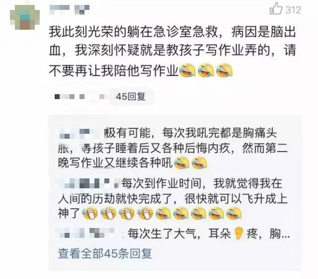 一位家長的“病例”,來自一篇《老娘做錯(cuò)了什么,卻要陪孩子寫作業(yè)》文章的評(píng)論,不少爸媽對(duì)他們的“遭遇”感同身受,并表示終于找到了組織。