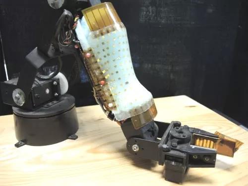 美國史丹佛大學學生展示一款包覆一連串傳感器的機器手臂,使其得以在行進中進行偵測與避開物體。