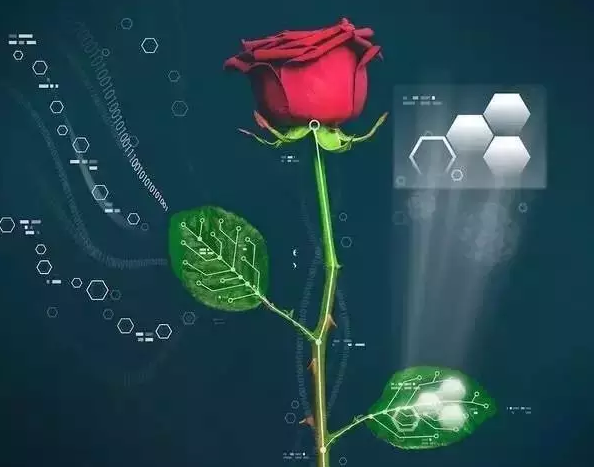 來自瑞典林雪平大學(xué)的科研小組利用具有導(dǎo)電性的聚合物溶液來培養(yǎng)玫瑰花,最終聚合物在被植物的導(dǎo)管系統(tǒng)吸收后形成導(dǎo)電水凝膠構(gòu)成的電子回路。在最初的電子植物雛形中,導(dǎo)電水凝膠只能分布在玫瑰花莖中。2017年,該科研小組設(shè)計了改良的有機導(dǎo)電聚合物,其在植物內(nèi)部具有更好的擴展性,可以自發(fā)分布到葉脈乃至花瓣中,形成遍布植物整體的導(dǎo)電網(wǎng)絡(luò) [7]。