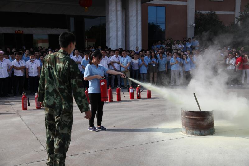 消防民警現(xiàn)場(chǎng)指導(dǎo)員工使用滅火器