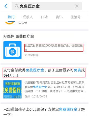 最近,在微信上聽到很多朋友都在談?wù)摚P(guān)于“如果生病住院,醫(yī)保之外自費(fèi)部分的住院費(fèi)可以找支付寶報(bào)銷一半!”這樣一件事。而支付相關(guān)負(fù)責(zé)人做出了回應(yīng)稱:確有這件事,并且根據(jù)個(gè)人住院情況,最高可以報(bào)銷2萬(wàn)元。此外,支付寶相關(guān)負(fù)責(zé)人還稱:用戶獲得的免費(fèi)醫(yī)療金還可以分享給自己的孩子,并且孩子生病的話最高就可以擁有4萬(wàn)的免費(fèi)報(bào)銷額度!
