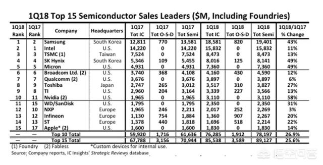 三星的產(chǎn)能已經(jīng)超越英特爾,位居第一了,可以看出來,芯片產(chǎn)業(yè)的老大還是美國,韓國、日本和歐洲瓜分了剩下的部分。