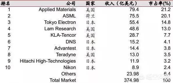 這里面美國、日本占據(jù)了絕對(duì)的優(yōu)勢,綜合來看,在整個(gè)半導(dǎo)體行業(yè),最厲害的還是美國和日本,因?yàn)榘雽?dǎo)體設(shè)備實(shí)在是比半導(dǎo)體制造還要復(fù)雜難攻的技術(shù)。