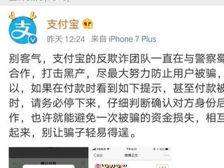 隨后,支付寶官方進(jìn)行回應(yīng)稱,“支付寶的反欺詐團(tuán)隊(duì)一直在與警察蜀黍們合作,打擊黑產(chǎn),盡最大努力防止用戶被騙,所以,如果在付款時(shí)看到如下提示,甚至付款被中斷時(shí),請(qǐng)務(wù)必停下來(lái),仔細(xì)判斷確認(rèn)對(duì)方身份后再操作。”