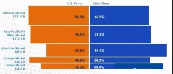 美國半導(dǎo)體公司在全球各個(gè)地區(qū)的影響力