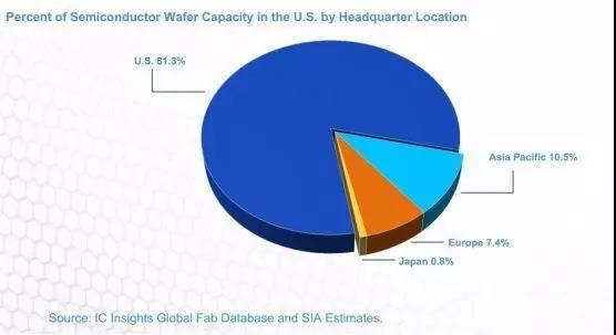 在2017年,81%美國本土的半導(dǎo)體硅晶圓是被美國半導(dǎo)體公司消耗。而總部位于亞太地區(qū)的公司,只消耗了美國總晶圓的10%。