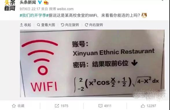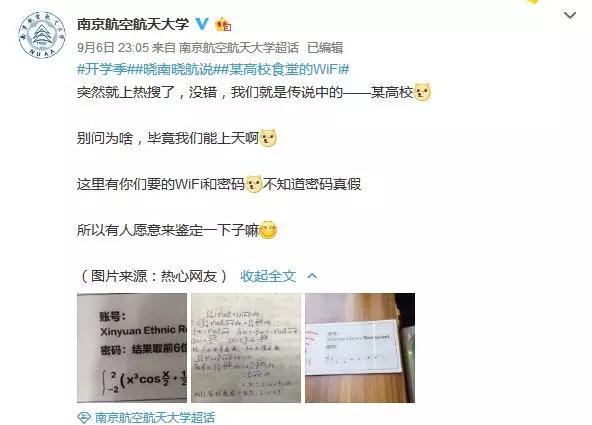 昨天微博上一則“某高校食堂的WiFi”的帖子