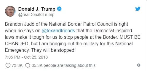 美國(guó)總統(tǒng)特朗普周四一早就發(fā)表推文暗示了這一舉動(dòng),稱將出動(dòng)軍力來(lái)應(yīng)對(duì)“國(guó)家緊急狀況”。