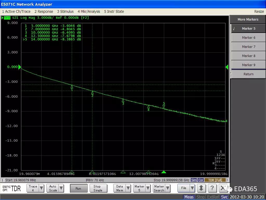 同樣線寬表面覆膜微帶線的S21好于不蓋膜情況,所以覆膜是必要的,同樣的問題,覆膜的材料等不一樣同樣的思考,也會帶來信號損耗的不一樣。這個結(jié)論和信號線走內(nèi)層同樣的線寬損耗小很多一個道理。