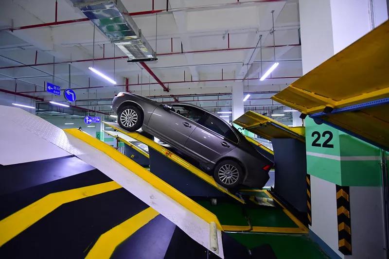 這是我國首個(gè)“平面斜置式”智能停車庫