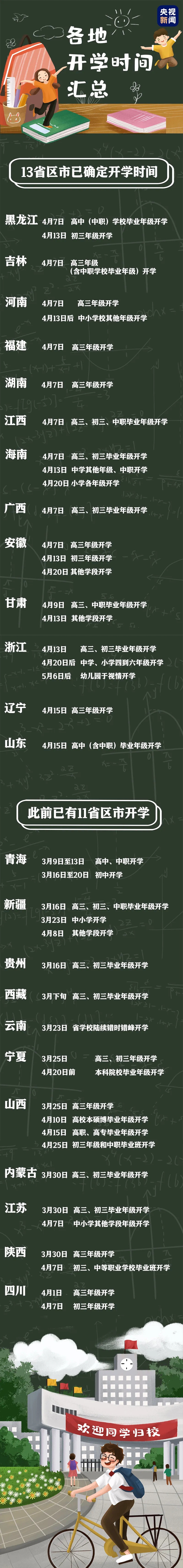 4月7日,黑龍江、吉林、河南、福建等9地的高三學(xué)生恢復(fù)開學(xué),部分省區(qū)市的初三年級和其他學(xué)段開學(xué)時間也已出爐。