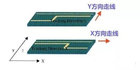 輸入和輸出端的導(dǎo)線應(yīng)盡量避免相鄰平行。在 PCB 布線時,相鄰層的走線方向成正交結(jié)構(gòu),避免將不同的信號線在相鄰層走成同一方向,以減少不必要的層間竄擾。當(dāng) PCB 布線受到結(jié)構(gòu)限制(如某些背板)難以避免出現(xiàn)平行布線時,特別是在信號速率較高時,應(yīng)考慮用地平面隔離各布線層,用地線隔離各信號線。相鄰層的走線方向示意圖如下圖。