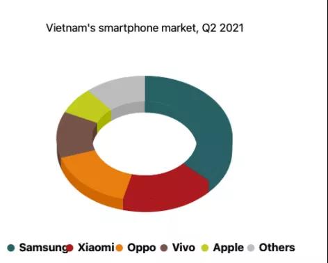 值得注意的是,越南本土手機品牌Vinsmart在今年5月宣布退出智能手機市場,由此留下了一部分市場份額被“場內選手所瓜分”。在退出市場之前,Vinsmart是越南僅次于三星、OPPO和vivo的第四大智能手機廠商,曾占約17%的市場份額。