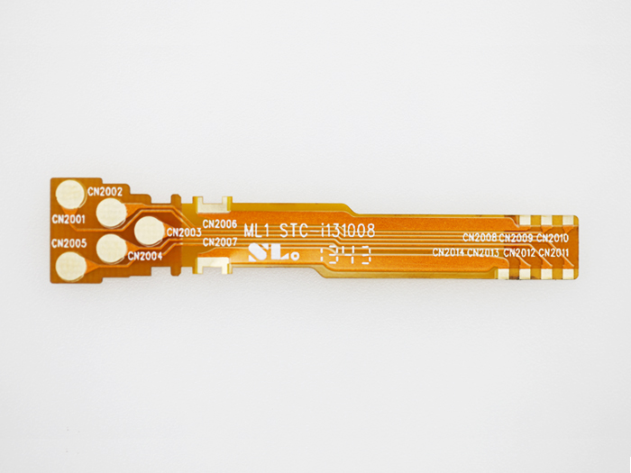 型 號(hào):RM01C00187A層 數(shù):1板 厚:0.12mm材 料:單面有膠電解銅 厚:1/2 OZ表面處理:沉金2微英寸最小線寬/線距:0.1mm/0.08mm特 點(diǎn):外形復(fù)雜