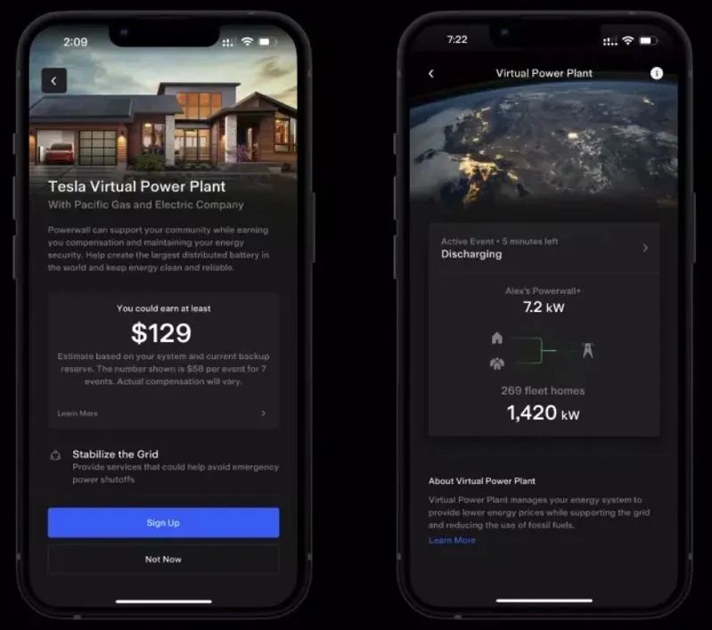 使用Tesla Electric,用戶的儲能系統(tǒng)會自動決定何時充電以及何時向電網(wǎng)出售電力,即該系統(tǒng)可在低電價時為電動汽車充電或存儲電力,在最有利的情況下將來自于業(yè)主儲能系統(tǒng)的電力出售到電網(wǎng)。當(dāng)電網(wǎng)關(guān)閉時,特斯拉還可為參與該計(jì)劃、使用可再生能源電力的用戶提供獎勵積分補(bǔ)償。此前,特斯拉已經(jīng)在虛擬電廠領(lǐng)域有了眾多實(shí)踐經(jīng)驗(yàn),其中包括2018年在澳大利亞建造的250MW發(fā)電廠等項(xiàng)目,2021開始在日本宮古島上房屋提供300多套儲能系統(tǒng)。特斯拉最近一次的虛擬電廠嘗試,是與美國加利福尼亞公用事業(yè)公司PG&E的合作。該協(xié)議的目的是在嚴(yán)重電力短缺等緊急情況時,從參與該項(xiàng)目的儲能系統(tǒng)Powerwall業(yè)主那里獲取電力,這個操作不僅可以幫助避免周圍社區(qū)停電,而且他們每賣出一度電能賺到2美元。該項(xiàng)合作的首次虛擬電廠活動見證了2600多戶家庭向電網(wǎng)供電,而后續(xù)有3600多戶家庭使用分布式電池儲能參與進(jìn)來。