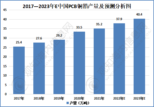2017—2023年E中國PCB銅箔產(chǎn)量及增速情況