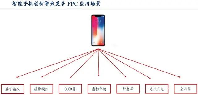 而隨著智能手機內(nèi)部的創(chuàng)新推動FPC應(yīng)用場景增多,誕生了更多需要用FPC軟板連接的新功能: