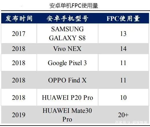 目前,在手機輕薄化趨勢下,華為、三星、Vivo、OPPO以及Google都有各自的手機型號采用了FPC軟板。