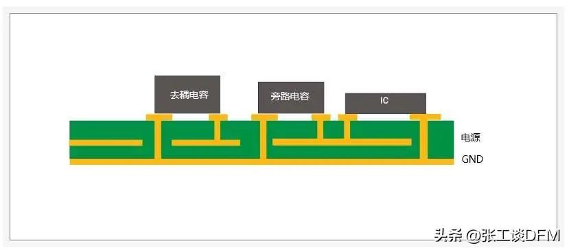 旁路電容旁路噪聲并減少電源總線的波動(dòng),放置在靠近設(shè)備或者IC的位置。連接在電源和接地之間,補(bǔ)償許多IC同時(shí)開關(guān)電源和接地層電勢(shì)的變化。