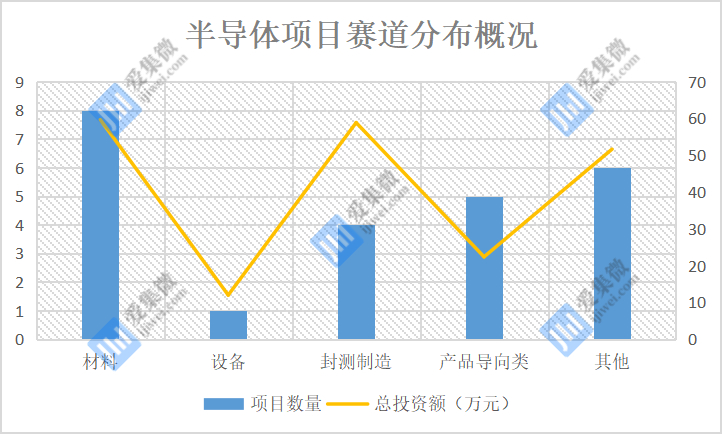 根據(jù)公開信息整理分析來看,在半導(dǎo)體領(lǐng)域,材料類項目依然是推介項目熱點方向,其次為封測制造和產(chǎn)品導(dǎo)向類項目,后者包括第三代半導(dǎo)體芯片、功率半導(dǎo)體、激光雷達(dá)芯片等。