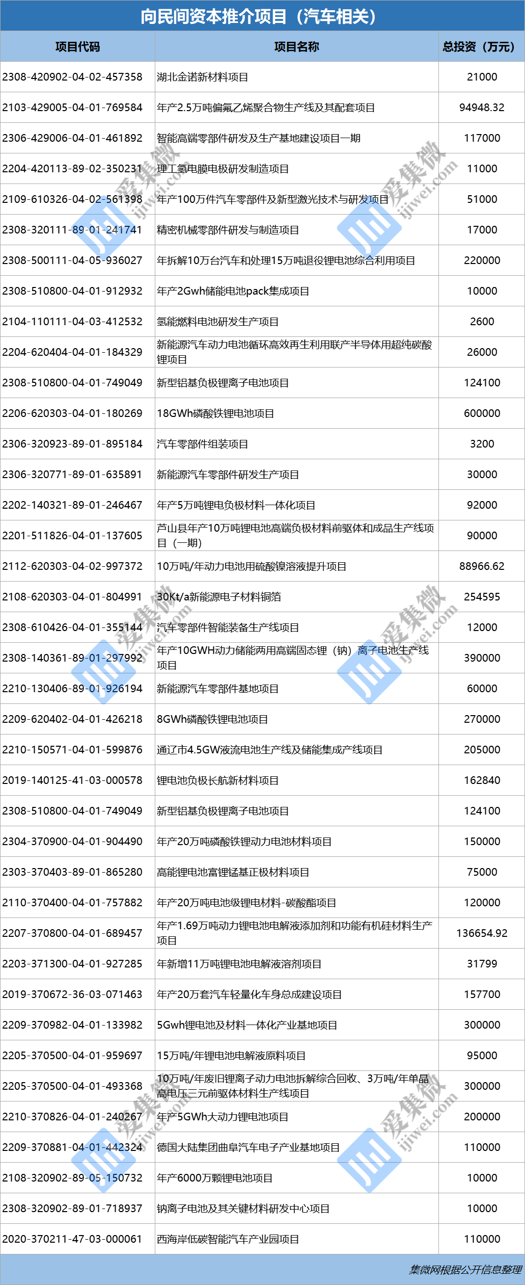 以下為汽車、半導(dǎo)體領(lǐng)域相關(guān)推介項目清單:
