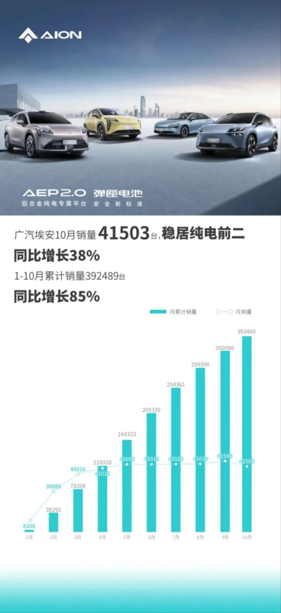 今年前10月,廣汽埃安已經(jīng)累計銷售近39.25萬輛,按照50萬輛的銷售目標(biāo),其完成率為78.5%,最后兩月需要月均銷售5萬輛方可完成任務(wù)。