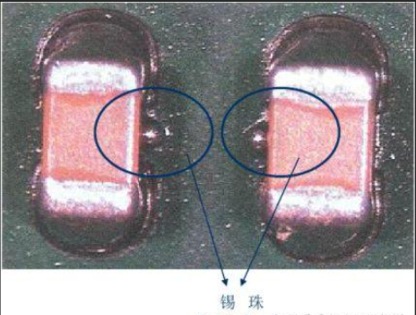 一、錫珠主要出現(xiàn)在芯片電阻和電容元件的一側(cè)