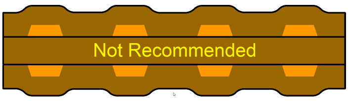 提到這一點,傳統(tǒng)的陰影多邊形會在0°、90°和45°角的方向存在多余的銅皮加強。更優(yōu)化的模式是六角形方式。使用負片層和陣列的六角焊盤就可以解決這個問題,使用復(fù)制和粘貼的方法可以更快速地建立陰影多邊形。