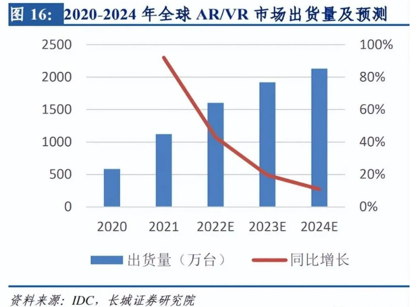 VR/AR頭顯設(shè)備市場爆發(fā),促進(jìn)FPC用量提升。目前AR/VR設(shè)備從普通機(jī)型到中高端機(jī)型,單機(jī)用FPC用量范圍可達(dá)10至20條,部分高端機(jī)型由于傳感器多、電路復(fù)雜、對(duì)于產(chǎn)品重量和性能要求更嚴(yán)格等因素,F(xiàn)PC用量更多,可能在20條以上。未來隨著產(chǎn)品迭代升級(jí),功能更加豐富,引入的傳感器攝像頭數(shù)目更多,產(chǎn)品對(duì)于輕量化、散熱性能的要求提升,F(xiàn)PC用量會(huì)進(jìn)一步增加。全球AR/VR市場出貨量有望從2020年的585萬臺(tái)增長至2024年的2130萬臺(tái),年均復(fù)合增長率為29.49%。中國VR設(shè)備出貨量整體呈現(xiàn)增長趨勢,2021年約為169萬臺(tái),預(yù)計(jì)2025年出貨量為1266萬臺(tái),F(xiàn)PC作為VR/AR的重要組成部分之一,市場潛力巨大。